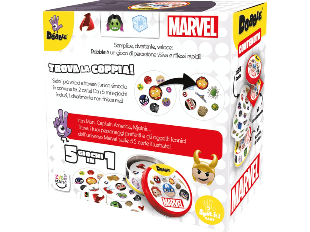 Trova i simboli comuni tra due carte e vinci la manche! Abbina più velocemente dei tuoi avversari l'unico simbolo identico tra due carte e poi nominalo ad alta voce. Un gioco semplice, veloce e divertente ideale per tutta la famiglia!