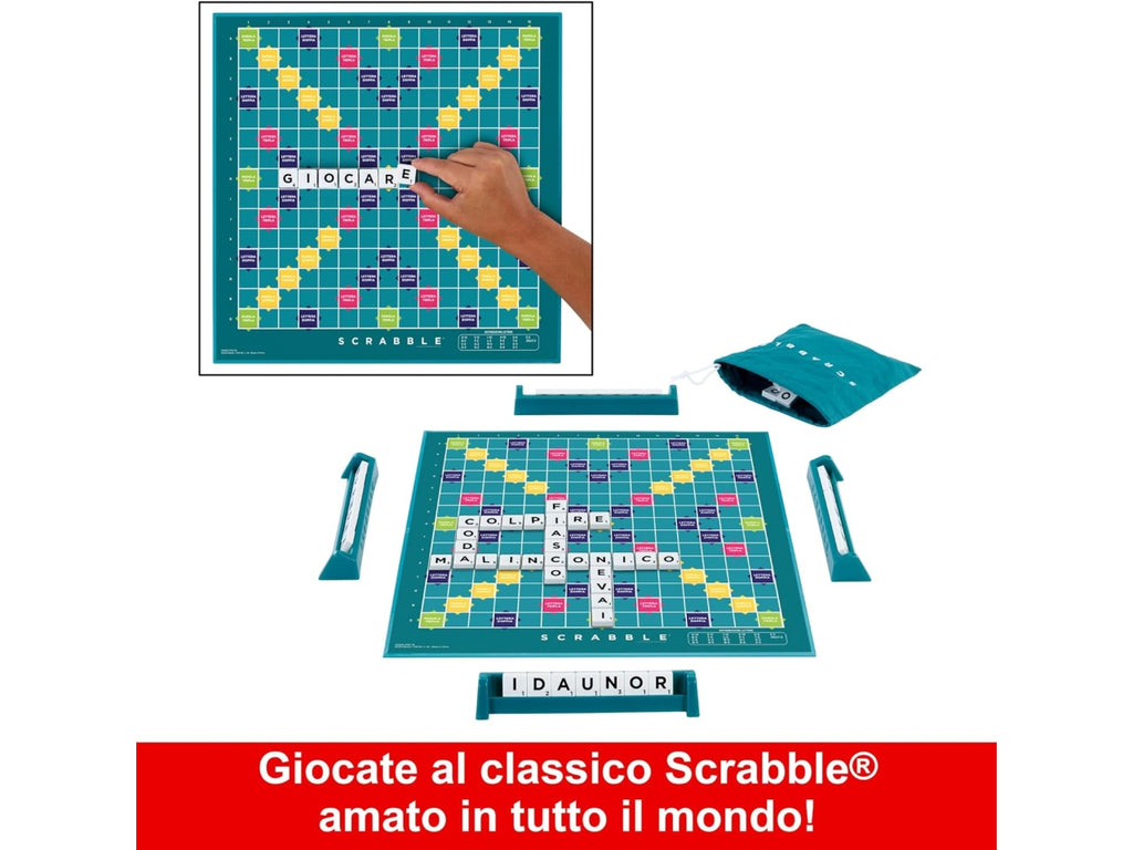 Due giochi in uno! Gioca al classico Scrabble amato e conosciuto da tutti…oppure gira il tabellone a due facce e prova Scrabble Parole di Squadra, appositamente progettato per un gioco cooperativo più semplice e veloce, con un punteggio semplice da ottenere!