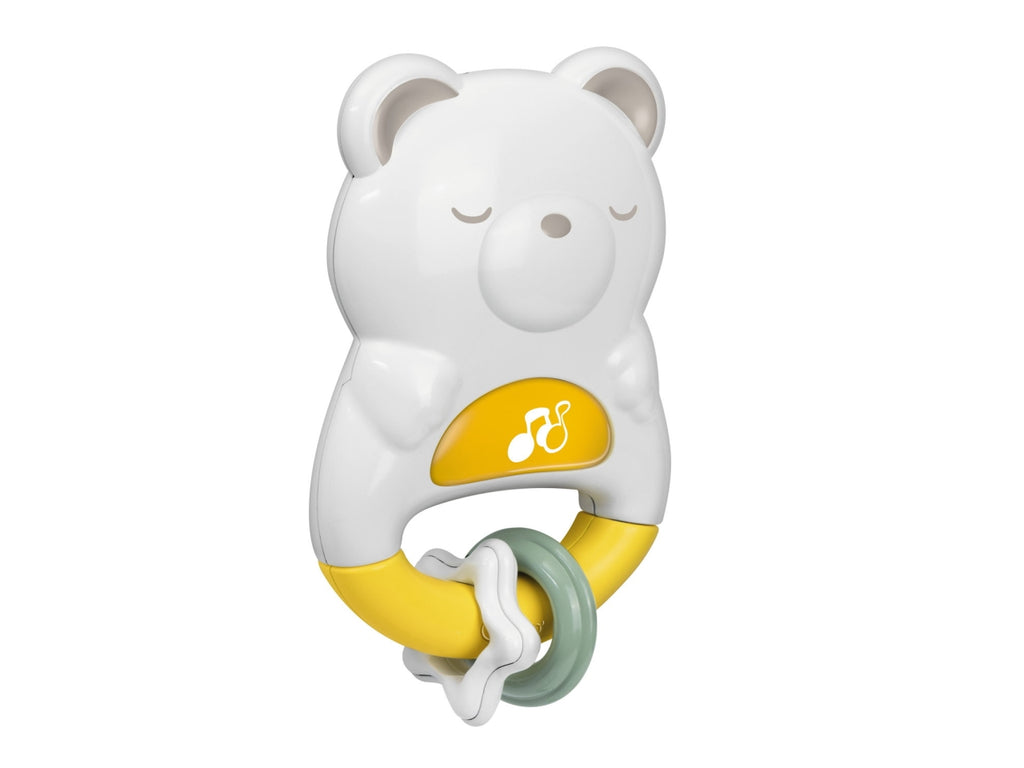 Innovativo trillino a forma di orsetto con due differenti modalità di utilizzo: intrattiene i bambini durante il giorno e si trasforma in una luce notte per accompagnarli nel delicato momento della nanna. Batterie incluse 3xLR 44 1.5V