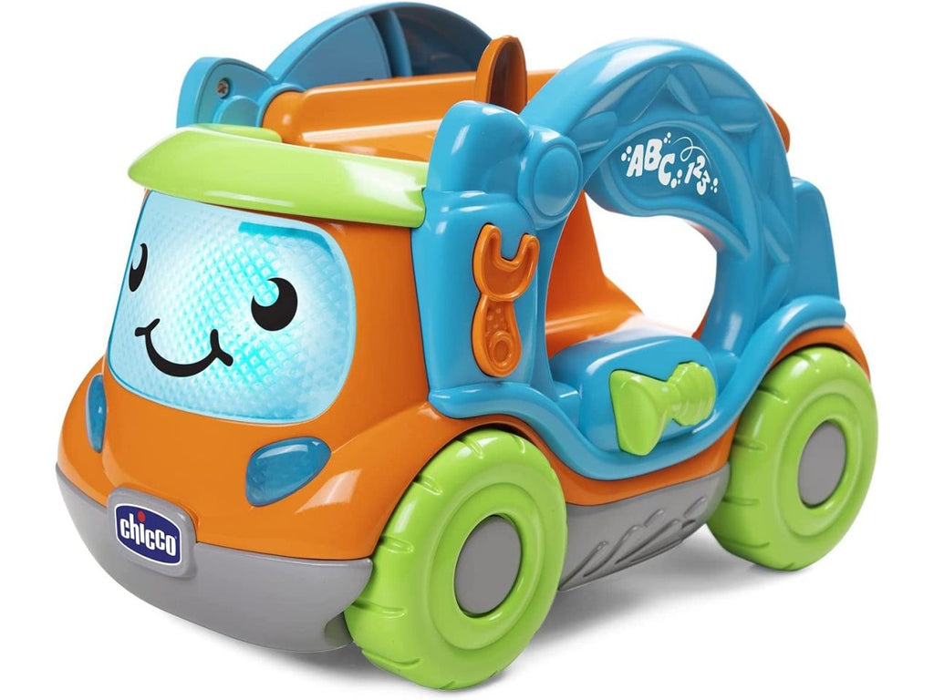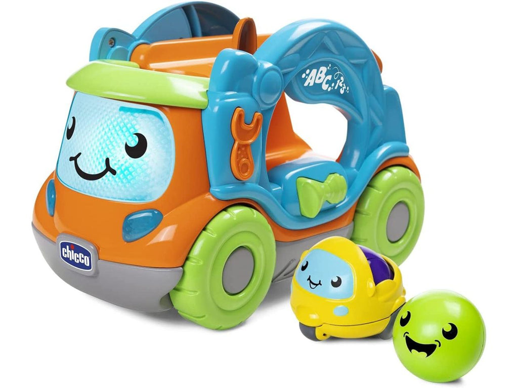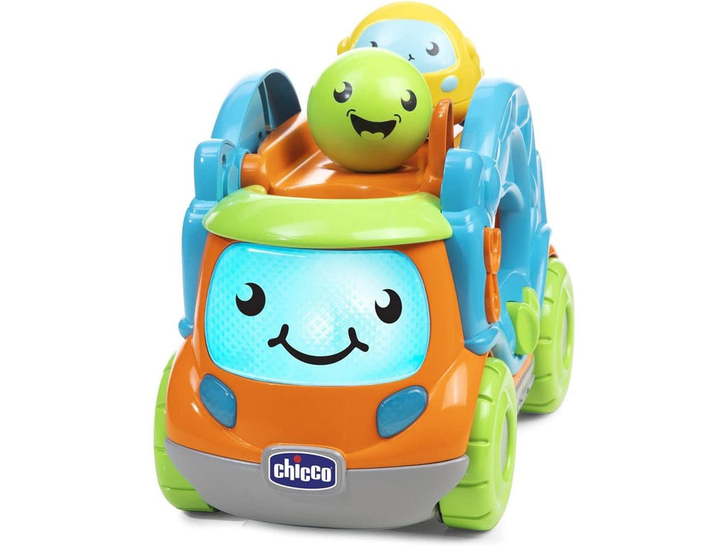 CENTRO ATTIVITà ELETTRONICO: Chicco Raimondo il Camion Giramondo è un divertente veicolo elettronico parlante per il trasporto dei mini veicoli e delle palline Turbo Ball; include 1 mini veicolo e una pallina RICCO DI ATTIVITà MANUALI: Il gioco offre tante attività manuali; i bambini possono divertirsi ad alzare e abbassare la rampa e a far scivolare le palline e i mini veicoli all'interno della cabina GIOCO EDUCATIVO PARLANTE: Premendo i due pulsanti laterali il giocattolo parla e insegna i numeri, le forme, i colori e gli elementi del camion LUCI E SUONI: Il gioco è ancora più coinvolgente grazie ai 2 pulsanti elettronici e al sensore che attiva i suoni quando la pallina scivola giù; inoltre, è dotato di effetti luminosi sulla cabina e sui fanali del camion COMPATIBILE: Chicco Raimondo il Camion Giramondo è compatibile con tutti i mini veicoli Turbo Ball per aumentare ed espandere il divertimento; può contenere sui 2 piani fino a 4 mini veicoli e palline GIOCHI PER BAMBINI: Scopri tutti i giochi Chicco, un mondo di divertimento con una vasta scelta di giochi prima infanzia e di regali per bambine e bambini