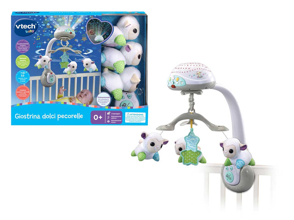 La giostrina dolci pecorelle di VTech è il compagno perfetto per aiutare il tuo bambino a dormire tranquillamente. Grazie al sensore sonoro integrato, le melodie vengono attivate automaticamente quando il bambino piange, aiutandolo a riaddormentarsi. Con 4 canzoni e 40 melodie, il tuo bambino sarà cullato da dolci suoni che lo accompagneranno nel mondo dei sogni. Questo giocattolo offre anche suoni della natura e rumori bianchi, che aiutano il bambino a calmarsi. Puoi impostare l'ascolto continuativo per 5, 15 o 30 minuti, in modo che il tuo bambino possa rilassarsi e addormentarsi facilmente. Inoltre, il proiettore luminoso e girevole crea diverse luci ed effetti luminosi che cullano il tuo bambino e lo accompagnano nel mondo dei sogni. La giostrina è dotata di un telecomando incluso, che ti permette di controllarla a distanza mentre il tuo bambino dorme. Inoltre, le 3 pecorelle e le 2 stelle rimovibili in tessuto sono facili da lavare, garantendo sempre un ambiente pulito per il tuo bambino.Facile da attaccare alla culla del tuo bambino, questa giostrina è comoda e sicura. Con oltre 55 canzoni, melodie, frasi e suoni, il tuo bambino avrà sempre qualcosa di nuovo da ascoltare e scoprire. Puoi regolare il volume e il giocattolo si spegne automaticamente, offrendo un'esperienza personalizzata e sicura per il tuo bambino.