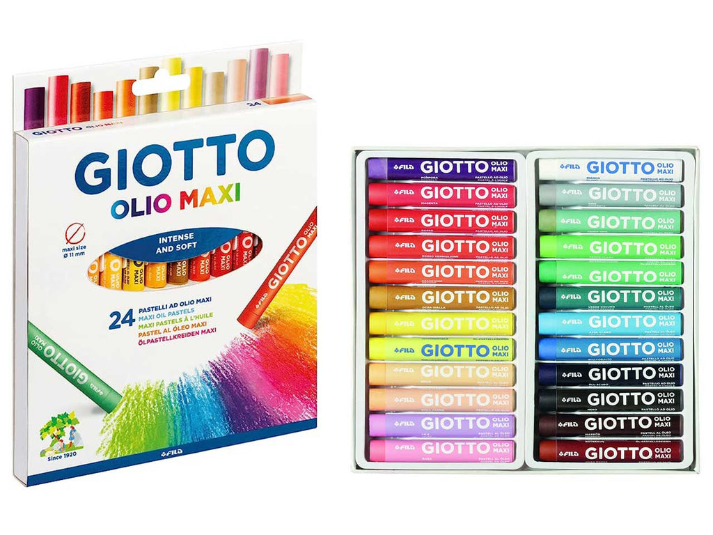 Pastelli ad olio fascettati per singolo colore. diametro 11 mm, lunghezza 70 mm. colori ricchi e coprenti. si stendono con facilità  . più grandi dei normali pastelli ad olio per una grande riserva di colore.astuccio appendibile 24 colori.