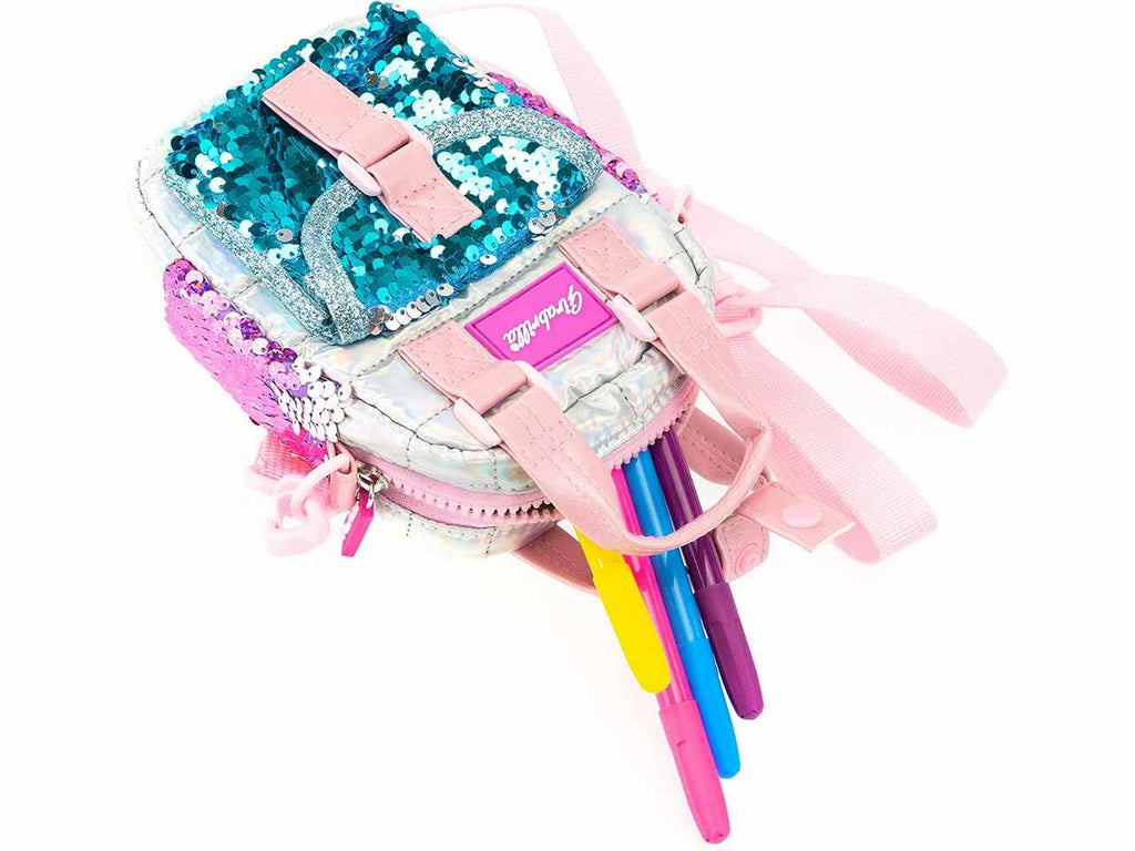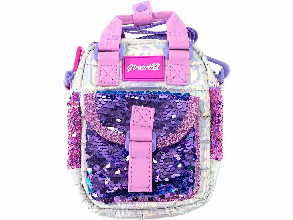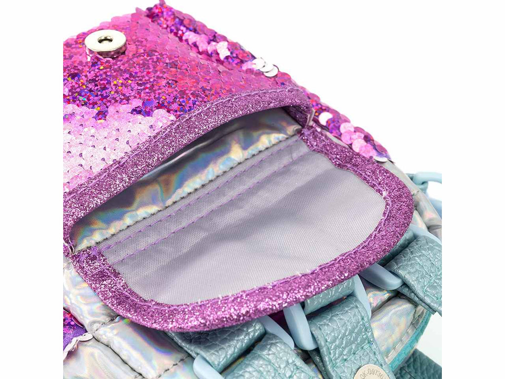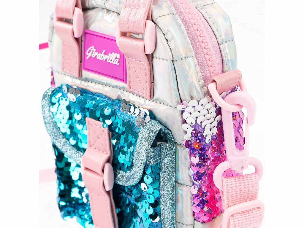 Borsetta Puffer a tracolla dai colori cangianti, realizzata con materiali di qualità  morbidi al tatto e può contenere diversi oggetti. la puffer bag presenta una tasca frontale con apertura a bottone magnetico, in paillettes reversibile girabrilla; lo scomparto principale è dotato di chiusura con cerniera zip. il rivestimento della borsetta è in tessuto nylon impermeabile. la tracolla è regolabile a piacimento ed è possibile anche il trasporto a mano grazie alle pratiche maniglie in tessuto apposte nella parte superiore. e disponibile in tre colori.