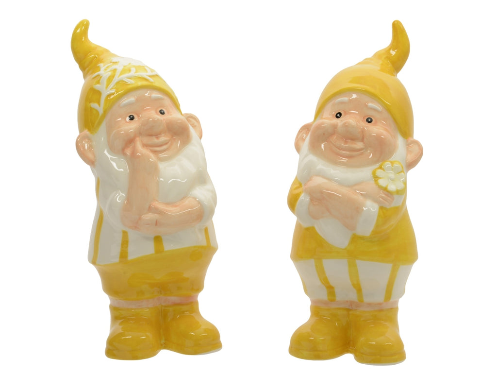 Lascia che la calda luce primaverile entri in casa tua con questa allegra statuetta di gnomo di Decoris. Questa slanciata statuetta in dolomite irradia carattere con il suo cappello giallo lucido e i pantaloni a righe. Con il suo sorriso malizioso e la giocosa decorazione Decall, questo gnomo aggiunge un tocco di charme a qualsiasi angolo interno o esterno. La sua altezza ridotta di 25 cm lo rende un delizioso elemento di attrazione su una credenza, un davanzale o un tavolo da giardino.