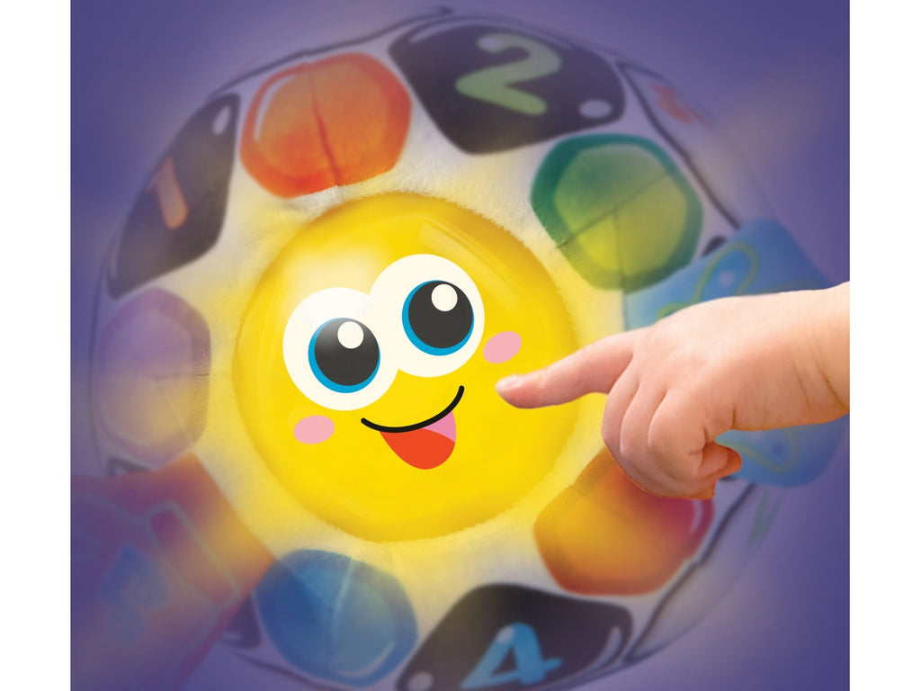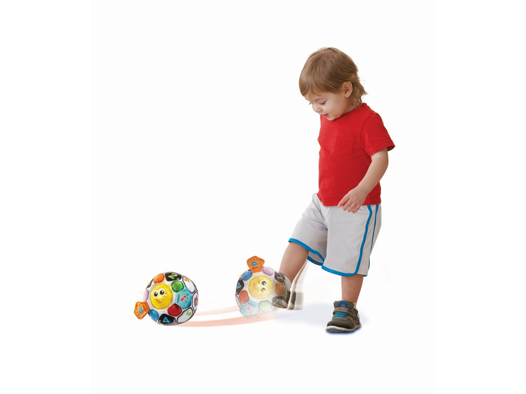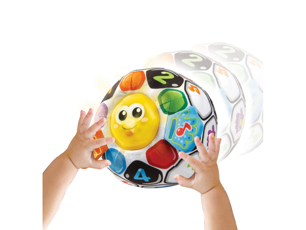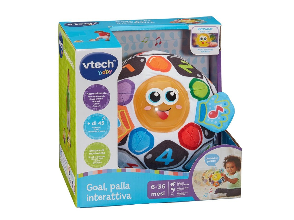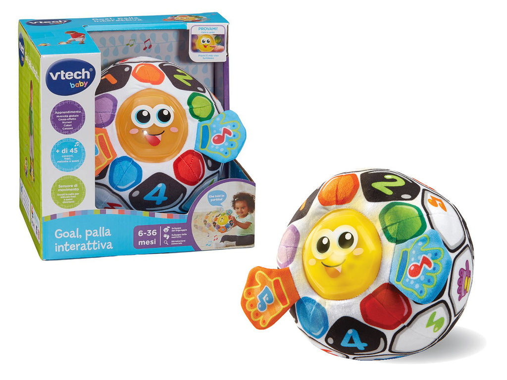 Goal è una morbida palla da calcio, colorata e interattiva, pensata per le prime scoperte del bambino. ⢠Premendo il viso di Goal, il bambino attiva melodie, frasi divertenti ed effetti luminosi. ⢠Grazie al sensore di movimento integrato, si attivano suoni e frasi divertenti quando il bambino lancia o fa rotolare la palla. ⢠Le simpatiche canzoni e le divertenti frasi incoraggiano le prime parole del bambino contribuendo allo sviluppo del suo linguaggio. ⢠Le manine di Goal, in tessuto frusciante, stimolano i sensi e la curiosità del bambino ⢠Più di 40 canzoni, melodie suoni e frasi. ⢠Il modulo elettronico è removibile e facilita il lavaggio in lavatrice. ⢠Regolazione del volume e spegnimento automatico.