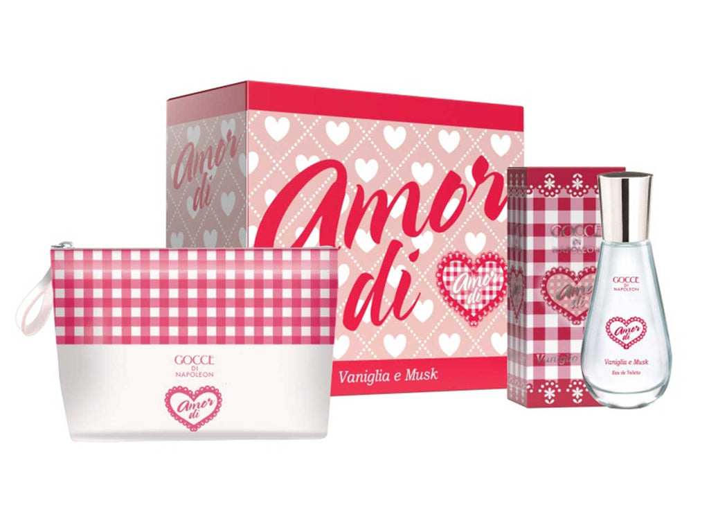 Un delizioso set regalo contenente l'eau de toilette gocce amor di vaniglia & musk da 30 ml e una pratica pochette. gocce amor di vaniglia e musk è una fragranza orientale con una partenza di note fresche e fruttate, il suo cuore racchiude note dolci e floreali e il suo fondo caldo e sensuale è arricchito da un' avvolgente vaniglia del madascar.modo d'uso profumo: vaporizzarlo a piacere su collo, retro del collo e sui polsi. ripetere l'applicazione tutte le volte che se ne sente la necessità  per una sferzata di energia e freschezza.piramide olfattiva:note di testa: bergamotto, limone, mandarinonote di cuore: eliotropio, chiodi di garofano, rosanote di fondo: musk, vaniglia, ambra