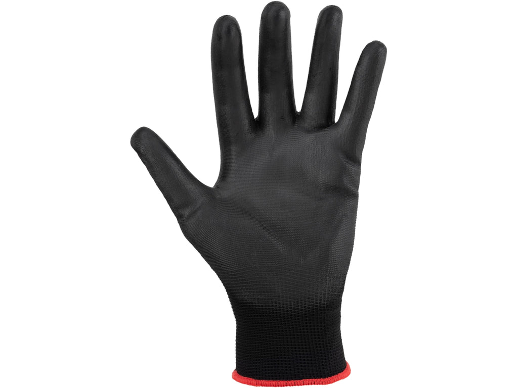 Guanto in poliestere con spalmatura in PU che conferisce al guanto buone caratteristiche di resistenza meccanica, elasticità e sensibilità tattile. Sono guanti consigliati per lavori di precisione e operazioni in cui è necessario mantenere una sensibilità elevata nella manipolazione di oggetti ed utensili. L'assenza di cuciture gli permette di garantire ottimo comfort di calzata
