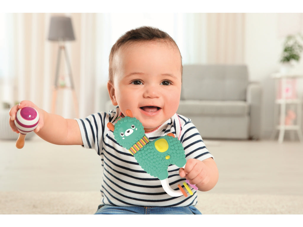 Il simpatico sonaglino interattivo a forma di Alpaca diventerà il passatempo preferito dai più piccoli! Premendo il tasto si attivano allegre melodie ed effetti sonori, mentre i ciondoli colorati attirano l'attenzione del bambino stimolando la percezione visiva e tattile. Il pratico gancio è perfetto per appendere il sonaglino e portarlo sempre con sé. 100% sicuro e adatto a neonati a partire dai 3 mesi. Scopri tutta la linea di sonaglini interattivi di Baby Clementoni, da appendere al passeggino o da attaccare al seggiolone.