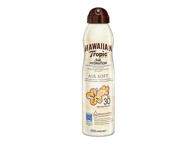Lo spray continuo Hawaiian Tropic Silk Hydration Air Soft fornisce una protezione UVA e UVB ad ampio spettro in uno spray leggero ad asciugatura rapida. Questa protezione solare ad alte prestazioni non unge e non ostruisce i pori. Hawaiian Tropic Silk Hydration Air Soft Can Spray funziona da qualsiasi angolazione, si distribuisce in modo uniforme e si assorbe rapidamente, lasciando un leggero profumo tropicale. Goditi una protezione resistente all'acqua fino a 80 minuti al mare o in piscina.
