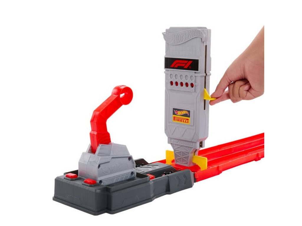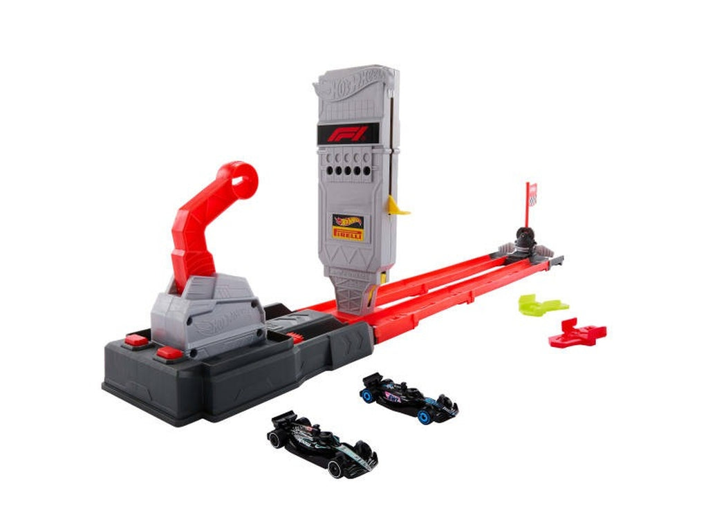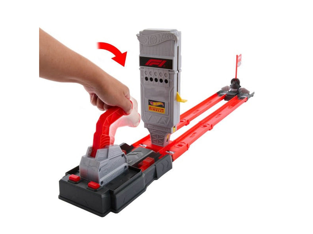 Il set di piste Hot Wheels Racing Formula 1 Grid Start porta a casa l'emozione delle corse di F1 con piste affiancate e dettagli realistici modellati sulle vere gare del Gran Premio! Carica due auto di F1 con licenza ufficiale nel lanciatore, spingi la leva sulla torre di partenza e concentrati sul conto alla rovescia. Premi il pulsante di lancio e corri fino alla fine, dove una bandiera a scacchi decreta un vincitore. Il set include componenti del sistema Speed ââSnap Track System, così i bambini possono collegare più piste e set per continuare a gareggiare. Piste aggiuntive vendute separatamente.