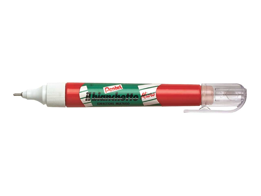 Il Bianchetto Micro ZL63 è il correttore più conosciuto. Contiene liquido multiuso a rapida essicazione. Punta fine in metallo 1,2 mm e valvola di erogazione che permette correzioni di estrema precisione su molteplici superfici. Flusso scorrevole e regolare. Inconfondibile cappuccio trasparente che si fissa con un âclickâ e impedisce lâasciugatura del liquido. Contiene 7ml. Punta fine.