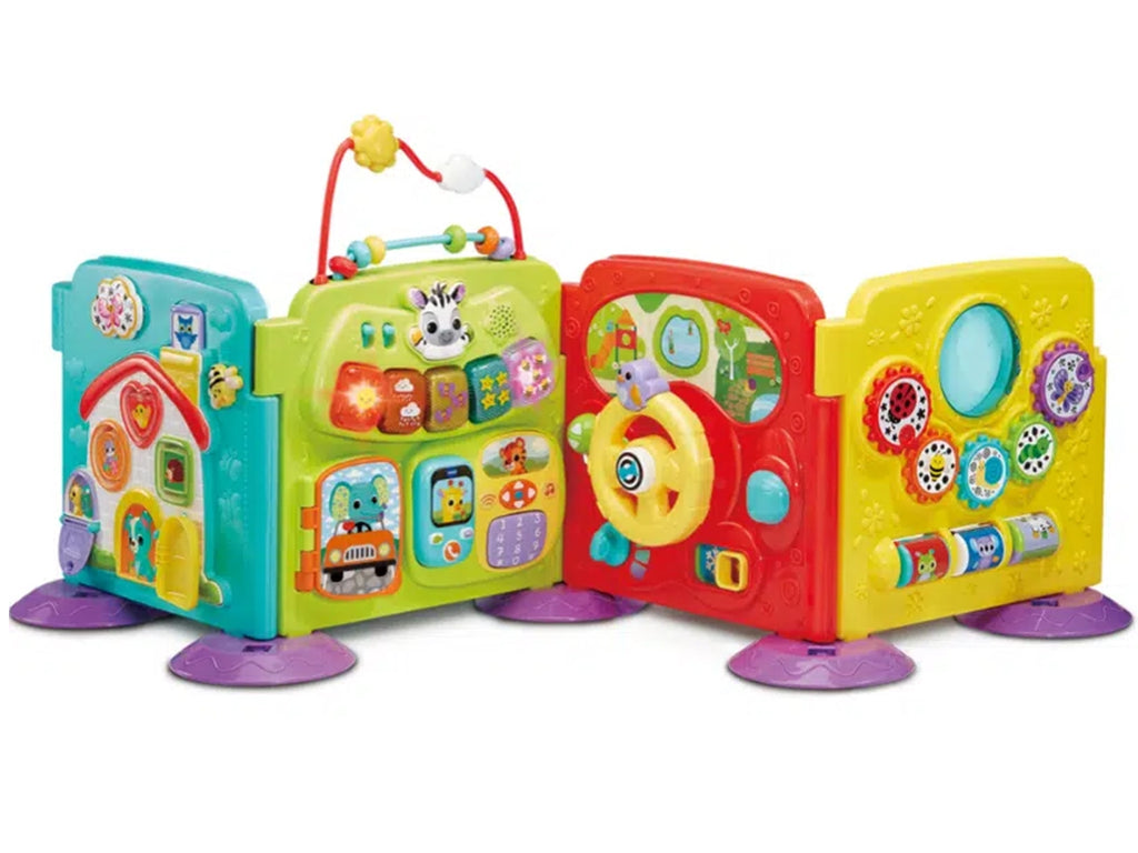 Ogni pannello offre attività diverse per esplorare numeri, colori, forme e animali: