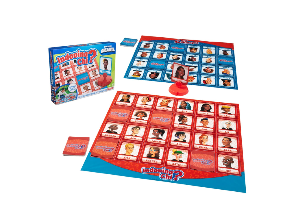 Provare a indovinare è divertentissimo con la versione gigante di questo iconico gioco da tavolo per bambini Hasbro. Indovina chi? arriva in formato gigante per incrementare il divertimento. Questo gioco classico in versione ingrandita è ottimo per incontri di gioco all'aperto o feste di compleanno. Gioca al chiuso o all'aperto con questo gioco da tavolo per bambini di 8-12 anni. Sia in estate che in inverno, puoi giocare a questo gioco per bambini ovunque desideri. Grazie ai tabelloni illustrati in vinile giganti il divertimento a casa o all'aperto è assicurato. Le regole di questo gioco divertente sono semplici. Poni domande all'avversario per scoprire il personaggio misterioso. Vince chi indovina prima dell'altro l'identità del personaggio avversario. Il vincitore poi gira la carta per rivelare il suo personaggio misterioso. Poni domande come: 'Il tuo personaggio ha gli occhi blu?' oppure 'Il tuo personaggio indossa un cappello?'. Questo gioco per tutta la famiglia per bambini e adulti è adatto a 2-4 giocatori, dagli 8 anni in su. à facilissimo da usare come gioco per 2 giocatori o come gioco multigiocatore. Preparati a un sacco di divertimento usando tanta immaginazione con Indovina Chi? Edizione Gigante.