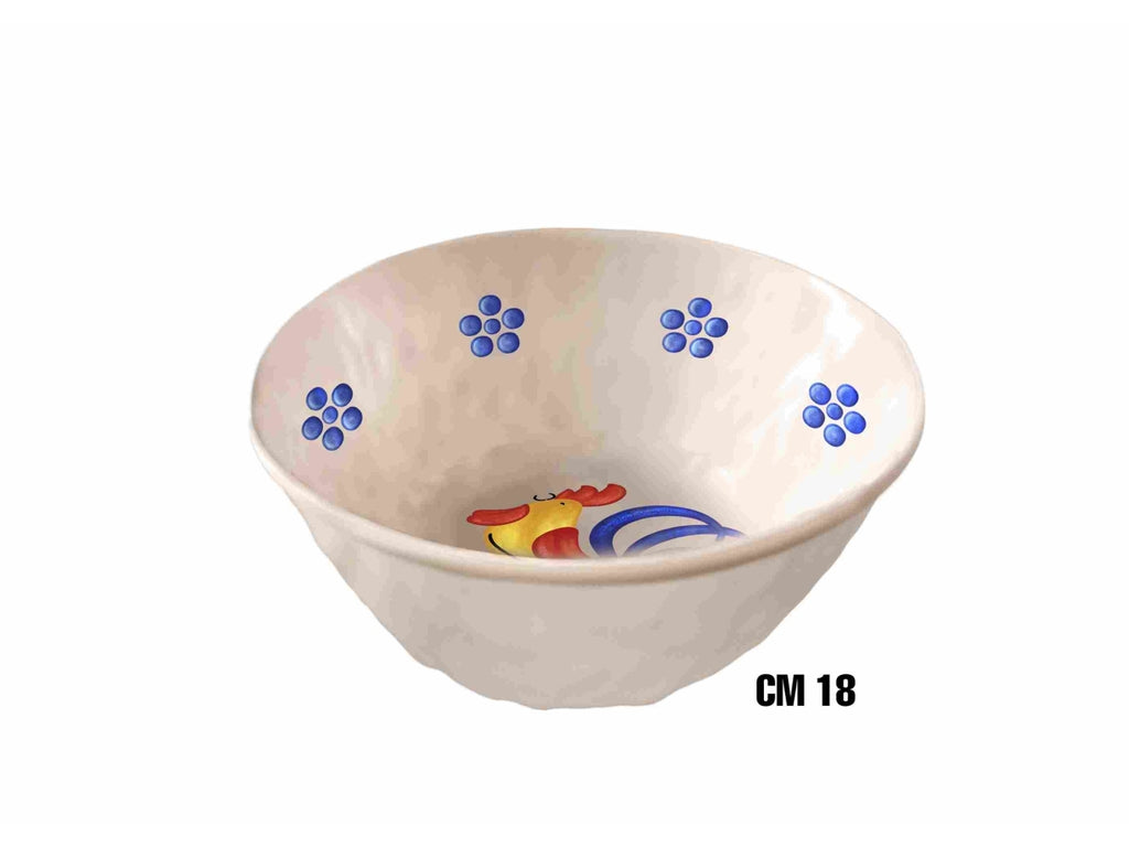 Insalatiera 18xh.7,5cm in melamina con decoro gallo