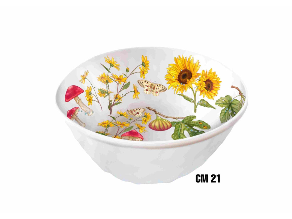 Insalatiera fonda 21xh.8cm in melamina decoro fiori e frutta