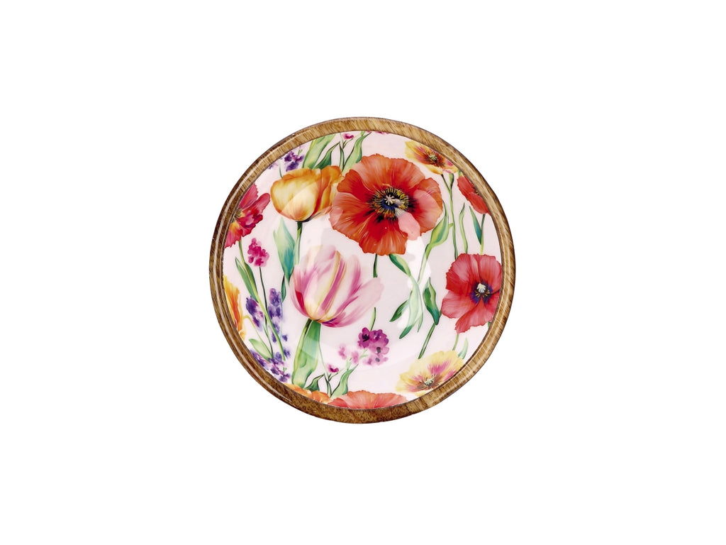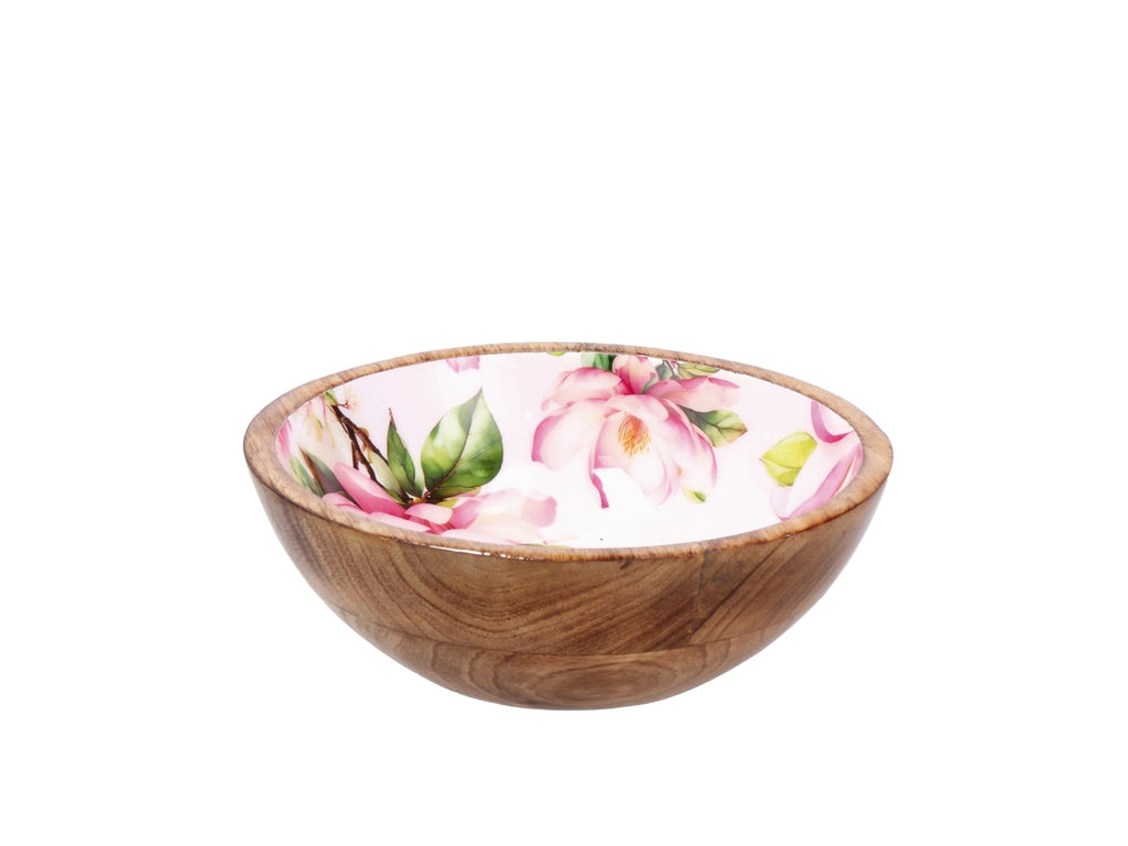 Iole ciotola 20xh.7cm in legno con decorazone floreale, 2 assortimenti