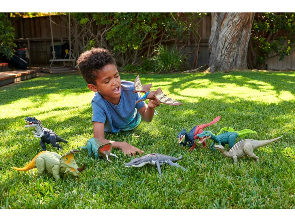 Preparati al brivido e all'avventura con questo dinosauro ispirato a Jurassic World Dominion. Questo dinosauro Attacco Ruggente di medie dimensioni riproduce un teropodo carnivoro, l'Ichthyovenator. Non solo prende vita RUGGENDO, ma può anche sferrare un attacco tipico della sua specie spalancando le FAUCI! Entrambe le funzionalità sono facili da attivare, basta premerlo sul fianco. L'Ichthyovenator ha articolazioni mobili, fattezze autentiche e colori e texture realistici per un gioco d'azione divertente e pose dinamiche. Dai VITA a questo dinosauro Attacco Ruggente che può estendersi al gioco digitale grazie alla realtà aumentata! Vuoi scoprire quanto può diventare REALE il dinosauro? Con un dispositivo smart scansiona il codice DNA nascosto e sblocca le esperienze di RA nell'app gratuita Jurassic World Facts. Perfetto per gli appassionati del gioco d'azione giurassico dai 4 anni in su. Dispositivo smart non incluso. Colori, dimensioni e decorazioni possono variare.