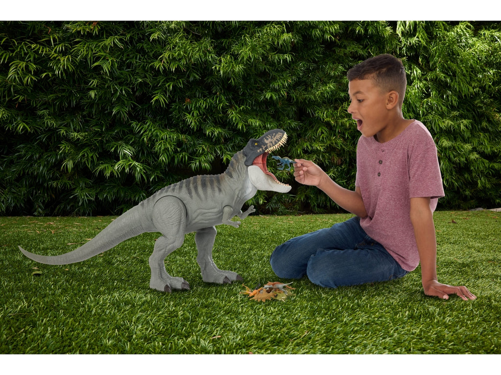 Questo dinosauro T-Rex Super Colossale porta a casa l'emozione di Jurassic World Rebirth con le sue dimensioni enormi e il suo look distintivo. Con una lunghezza di circa 99 cm, articolazioni mobili e un design autentico, questa action figure del T-Rex è pronta per assumere pose e mosse da combattimento. Può anche 'inghiottire' i mini dinosauri per ricreare in modo realistico le scene del film! Basta aprire il ventre per 'liberare' i dinosauri. Un fantastico regalo per gli appassionati dei grandi dinosauri dai 4 anni in su.
