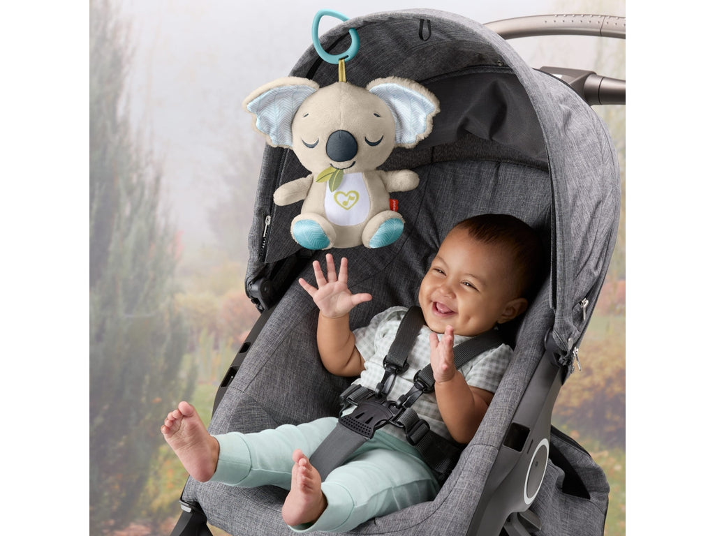 Con il peluche del Koala rilassante da portare ovunque di Fisher-Price, il bambino può rilassarsi e farsi coccolare, sia a casa che in viaggio. Con l'aspetto di un adorabile koala, questa unità sonora portatile personalizzabile riproduce fino a 20 minuti di musica dolce, rumori bianchi o 'shh' per calmare il neonato nel modo che preferisce. Caratterizzato da un morbido tessuto di peluche, orecchie satinate e divertenti nastri per l'esplorazione sensoriale, il Koala rilassante da portare ovunque è un compagno di viaggio straordinario per il tuo piccolo. Richiede 2 pile formato stilo AAA, incluse.