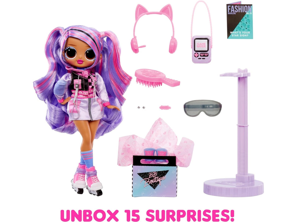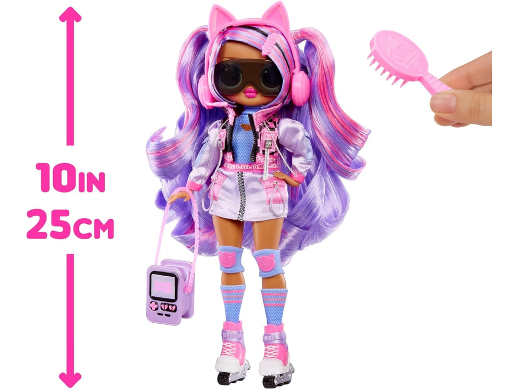 - La confezione comprende bambola fashion, abiti favolosi, scarpe, accessori, occhiali, una borsa, una spazzola per capelli e un supporto per bambola.