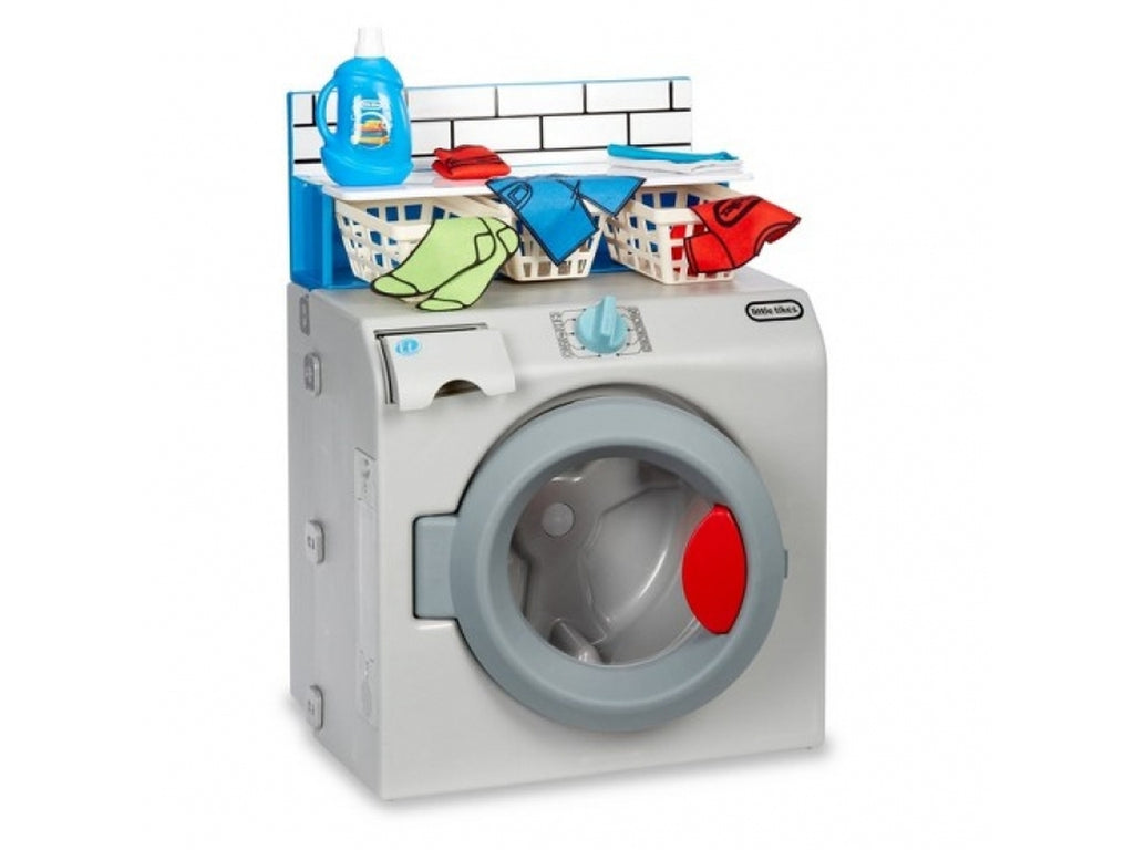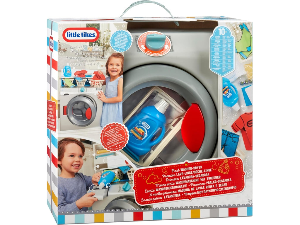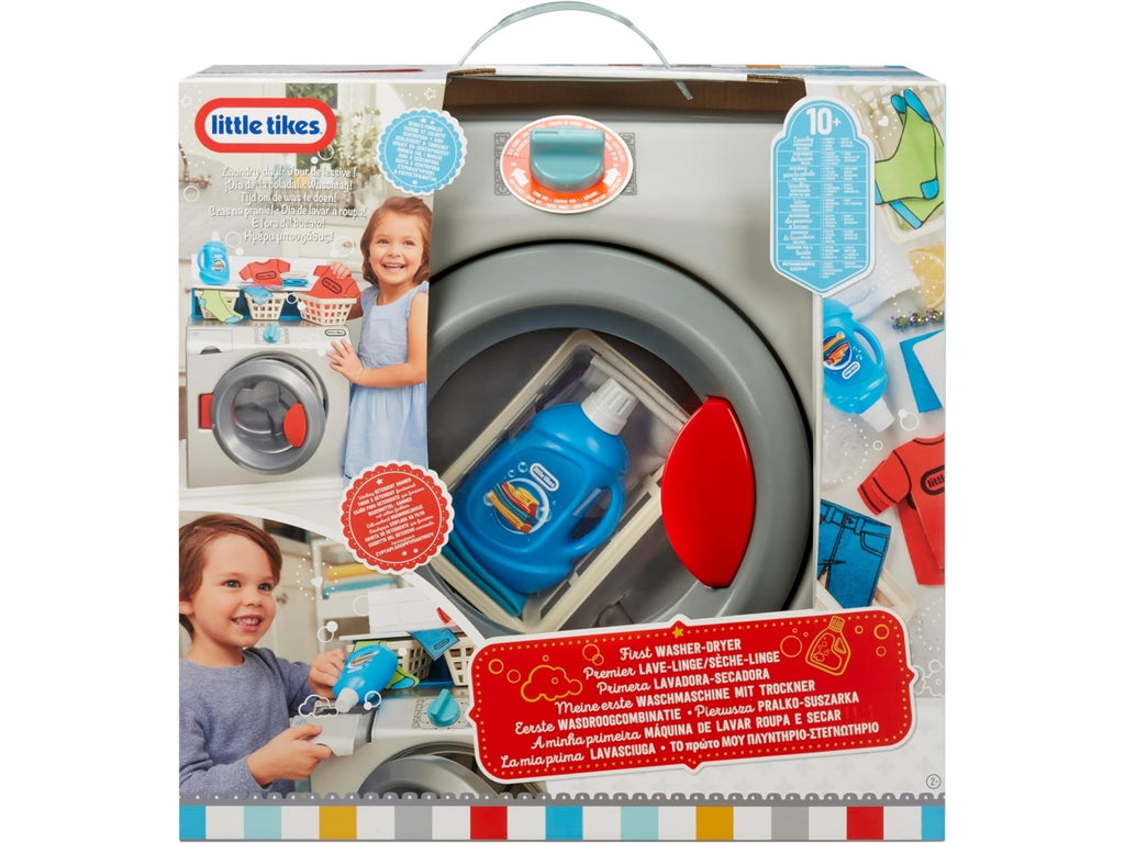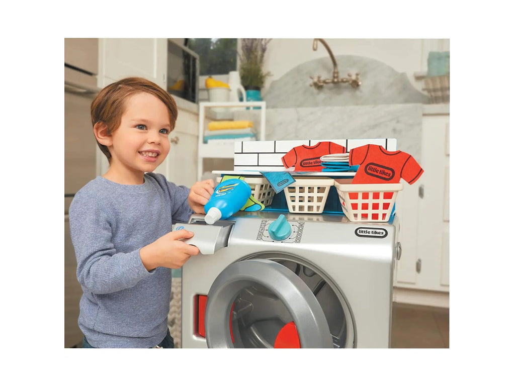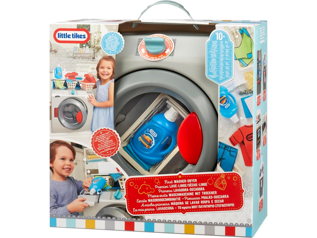 Questa lavasciuga vintage si ispira agli anni '50 ed è perfetta per i giochi di ruolo. La lavatrice-asciugatrice è progettata per ore di gioco creativo, in modo che i bambini possano fare il bucato proprio come i loro genitori. Questa lavasciuga è dotata di suoni realistici come la rotazione della manopola, il cestello rotante, i segnali acustici, il cambio di ciclo e altro ancora. I bambini possono girare la manopola per attivare il cestello rotante. Include 7 accessori realistici per il bucato: Cestino, asciugamano, vestito, camicia, 2 calzini e una scatola di detersivo. Facile da montare, dimensioni 40 x 30 x 52. Richiede 4 batterie AA, non incluse. Far finta di fare il bucato e altre faccende aiuta i bambini e le bambine ad acquisire un senso di responsabilità divertendosi. Età 2+