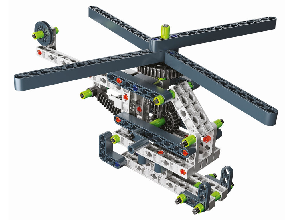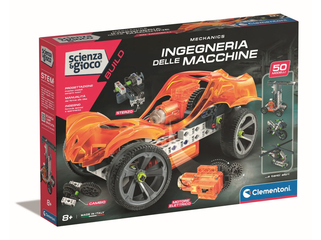 Un ricchissimo laboratorio con il quale apprendere in modo divertente i principi della meccanica e dell'ingegneria Grazie agli oltre 250 componenti contenuti nel gioco si potranno realizzare più di 50 costruzioni di complessità crescente Si potranno costruire un elicottero, una gru motorizzata ed un auto con motore elettrico, nel quale sarà possibile interagire manualmente con il cambio e lo sterzo Il corposo manuale scientifico illustrato guiderà il bambino nelle varie fasi di montaggio che potranno essere svolte in totale sicurezza Il design, l'ideazione, lo sviluppo e la fabbricazione sono completamente Made in Italy
