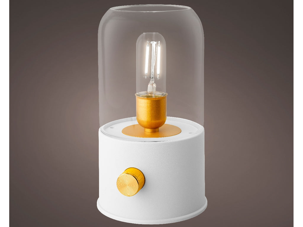 Lampada bianca led da campeggio per interno diametro 11cm per altezza 20cm in plastica con funzionamento a batteria ricaricabile 18650 li-ion