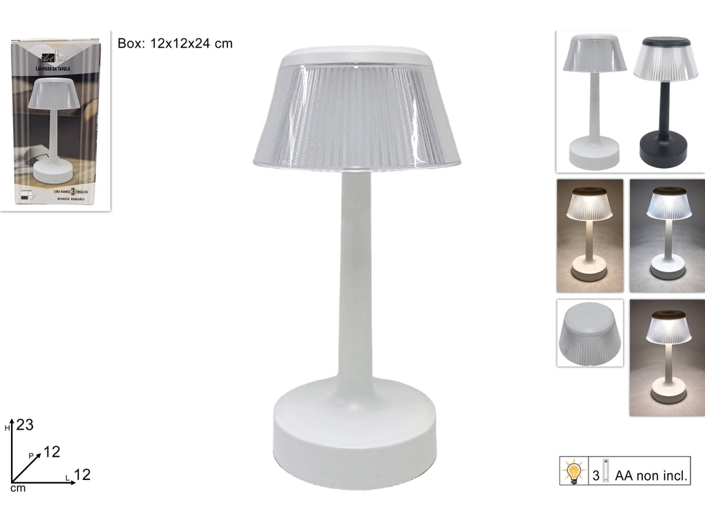 Lampada da tavolo bianca con 3 luminosita' a batterie 23cm