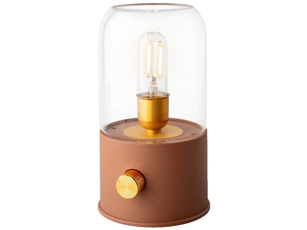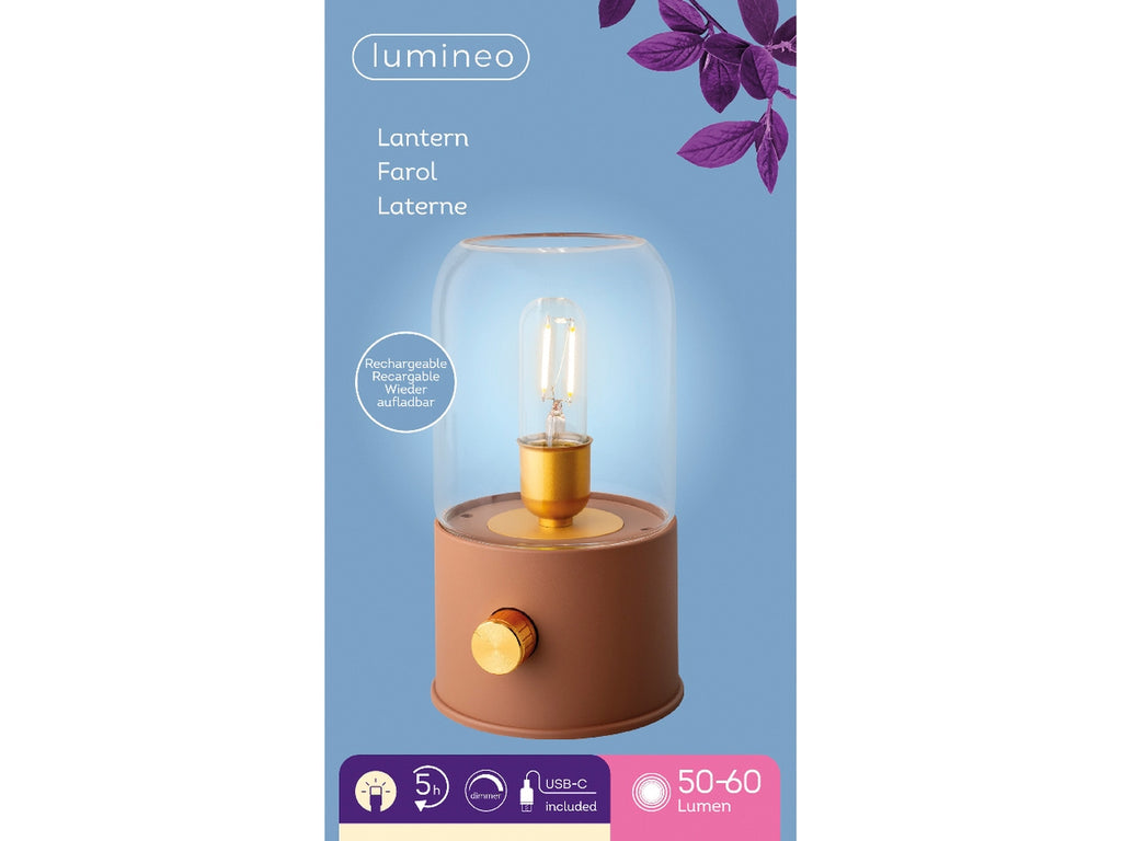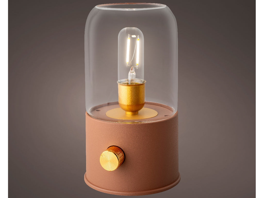 Lampada marrone led da campeggio per interno diametro 11cm per altezza 20cm in plastica con funzionamento a batteria ricaricabile 18650 li-ion