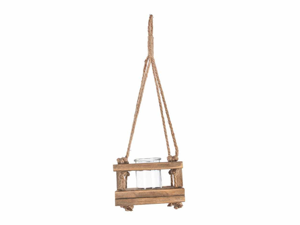 Lanterna in legno e vetro da appendere 18x12x52cm