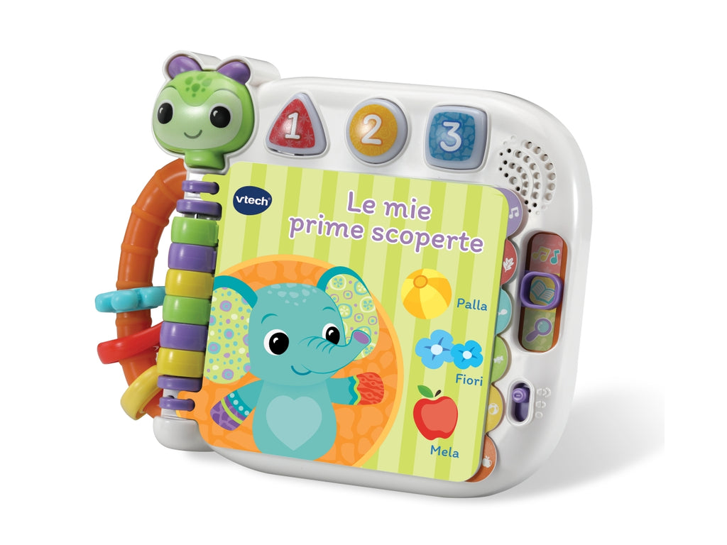 Grazie alla modalità âesplora e imparaâ il bambino arricchisce il proprio vocabolario scoprendo animali, oggetti, colori, numeri e forme. ⢠13 pagine colorate e plastificate adatte alle manine dei più piccoli. ⢠Interattivo: premendo il pulsante Bruco, il bambino testa le sue capacità di comprensione. ⢠3 pulsanti luminosi per imparare animali, numeri, colori e oggetti. ⢠1 canzone, 18 melodie, effetti sonori e frasi divertenti. ⢠Spegnimento automatico e regolazione del volume.