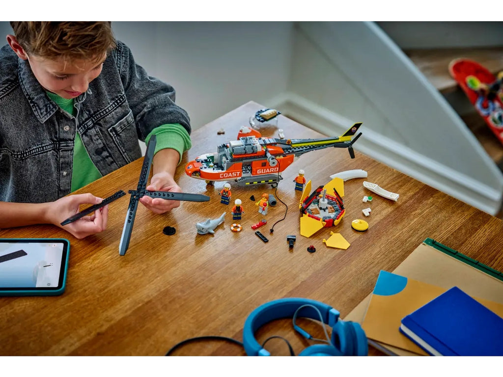 Questo set costruibile dell’Elicottero della Guardia Costiera LEGO® City è ricco di dettagli autentici per gli appassionati di giochi di finzione e veicoli di emergenza. L’imponente modello di elicottero rosso è dotato di rotori girevoli, sportelli laterali scorrevoli, rampa posteriore apribile, cabina di pilotaggio dettagliata e fusoliera. I bambini possono abbassare un membro dell’equipaggio con il verricello dell’elicottero e il set include anche una capsula di salvataggio apribile accessibile al suo interno. Basta aggiungere il pilota, il cittadino, 2 guardie costiere e lo squalo per ore di gioco di fantasia. Questo dettagliato set costruibile è un regalo divertente per i bambini di 7 anni che amano il gioco LEGO ricco di azione. Aggiungilo ad altri set LEGO City (disponibili separatamente) per avventure ancora più grandi. I bambini possono aumentare il divertimento con questo set Elicottero della Guardia Costiera LEGO nell’app LEGO Builder, dove possono ingrandire e ruotare con le istruzioni 3D, salvando e monitorando i progressi mentre costruiscono. Il set contiene 551 pezzi.