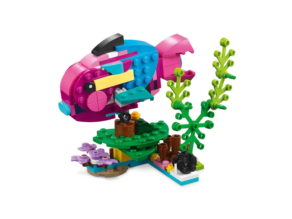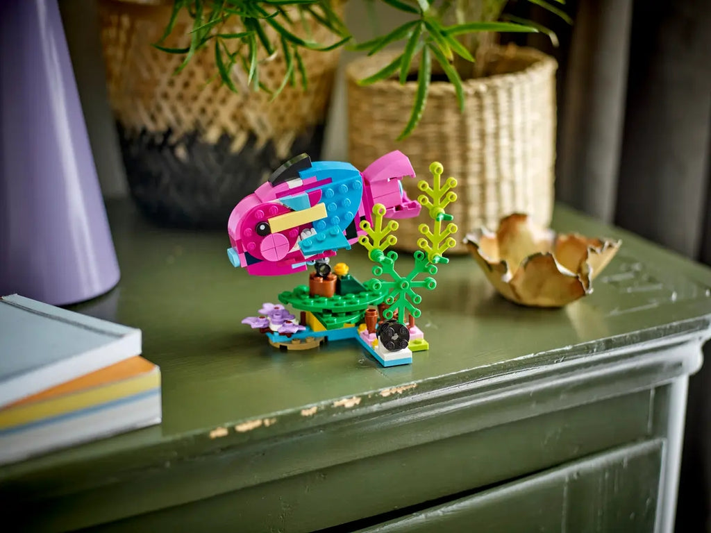 I piccoli costruttori e gli appassionati di animali dai 7 anni in su potranno esplorare la foresta pluviale e vivere storie ricche di azione con il set costruibile del Pappagallo esotico rosa LEGO® Creator 3 in 1 (31144). Il set contiene un pappagallo rosa e blu che può ruotare completamente il corpo quando è appollaiato sul ramo dellâalbero e muovere le ali e la coda. I giocattoli 3 in 1 danno il via al divertimento creativo Con questo fantastico set LEGO 3 in 1, i bambini possono costruire 3 diversi animali esotici, tra cui un pappagallo coloratissimo appollaiato su un ramo dâalbero, un pesce che nuota allegramente in fondo al mare o una simpatica rana che può muovere le zampe. Unâesperienza digitale divertente per i fan LEGO Scaricando lâapp LEGO Builder, i bambini entrano in un nuovo mondo di costruzioni dove possono ingrandire e ruotare i modelli 3D, salvare i set e tenere traccia dei loro progressi.
