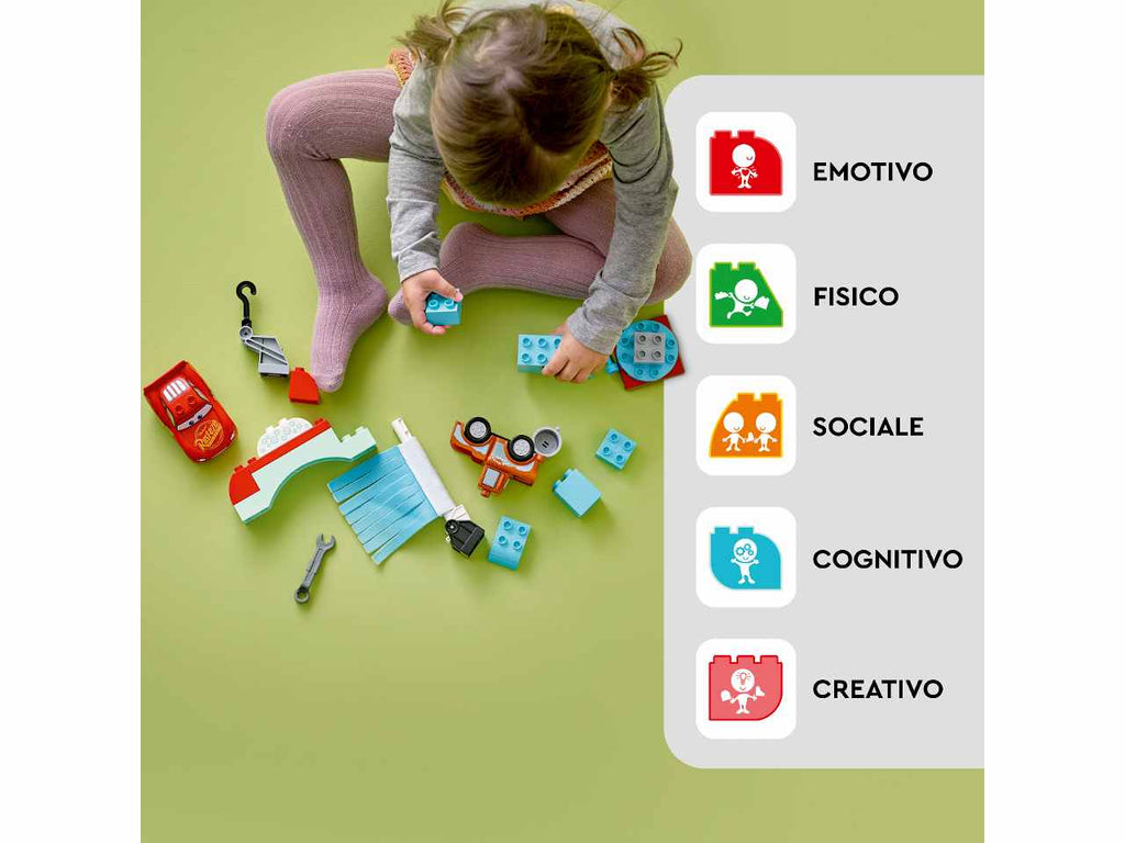 Lego 10996 duplo | disney pixarcars divertimento allautolavaggio con saetta mcqueen e cricchetto, macchine giocattolo per bambini e bambine dai 2 anni Il set di costruzioni LEGO DUPLO | Disney e Pixar Divertimento allAutolavaggio con Saetta McQueen e Cricchetto (10996) è un magnifico gioco per bambini e bambine dai 2 anni in su, fan dei famosi personaggi della serie di film Cars. I piccoli possono passare ore divertenti mentre ripuliscono e rimettono a nuovo le due simpatiche macchine giocattolo.