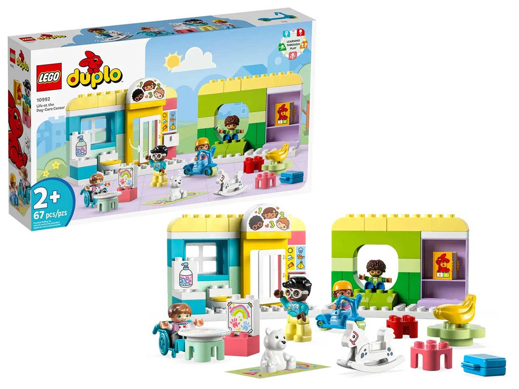 I bambini di 2+ anni troveranno tante attività  entusiasmanti nel set divertimento allasilo nido lego® duplo® town (10992). questo playset educativo consente ai bambini di scoprire le routine quotidiane e i colori, imparando anche a far di conto.ricco di dettagli realisticiil set è ricco di attività  creative che consentono ai genitori e ai bambini di ricreare scenari di gioco sociale, proprio come in un vero asilo nido. i bambini possono dipingere con le dita nellarea artistica o gustareuna deliziosa merenda. il bambino sulla sedia a rotelle può lanciarsi giù dalla rampa e unirsi allamico sul monopattino. i genitori possono anche insegnare limportanza di lavarsi le mani nel bagno, che contiene un water e un lavandino.stimola i sensicome tutti i giocattoli lego duplo per bambini, questo set contiene mattoncini dai colori vivaci progettati per la manipolazione e la costruzione con mani piccole, mentre il tappetino con i numeri in tessuto è un fantastico elemento tattile.i set lego duplo aiutano i bambini a dare un senso al mondo che li circonda, raffigurando ambientazioni riconoscibili e caratterizzate da una ricca varietà  di personaggi.regalo per bambini in età  prescolare: i bambini di 2+ anni che amano giocare con il mondo reale si divertiranno a esplorare questo playset lego®duplo®, cosìcome i genitori che amano condividere le tappe dello sviluppo dei loro bambini.