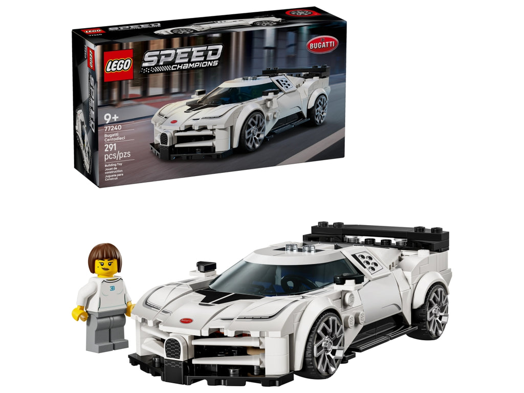 I bambini dai 9 anni in su possono collezionare, costruire, giocare ed esporre questo modello Hyper Sports Car Bugatti Centodieci LEGO® Speed Champions (77240). Progettato per rendere omaggio al leggendario modello Bugatti EB 110, questo fantastico giocattolo per bambini e bambine presenta molti famosi dettagli di design del veicolo reale.