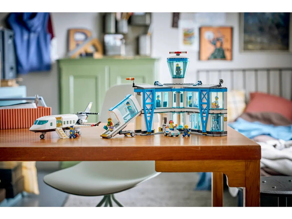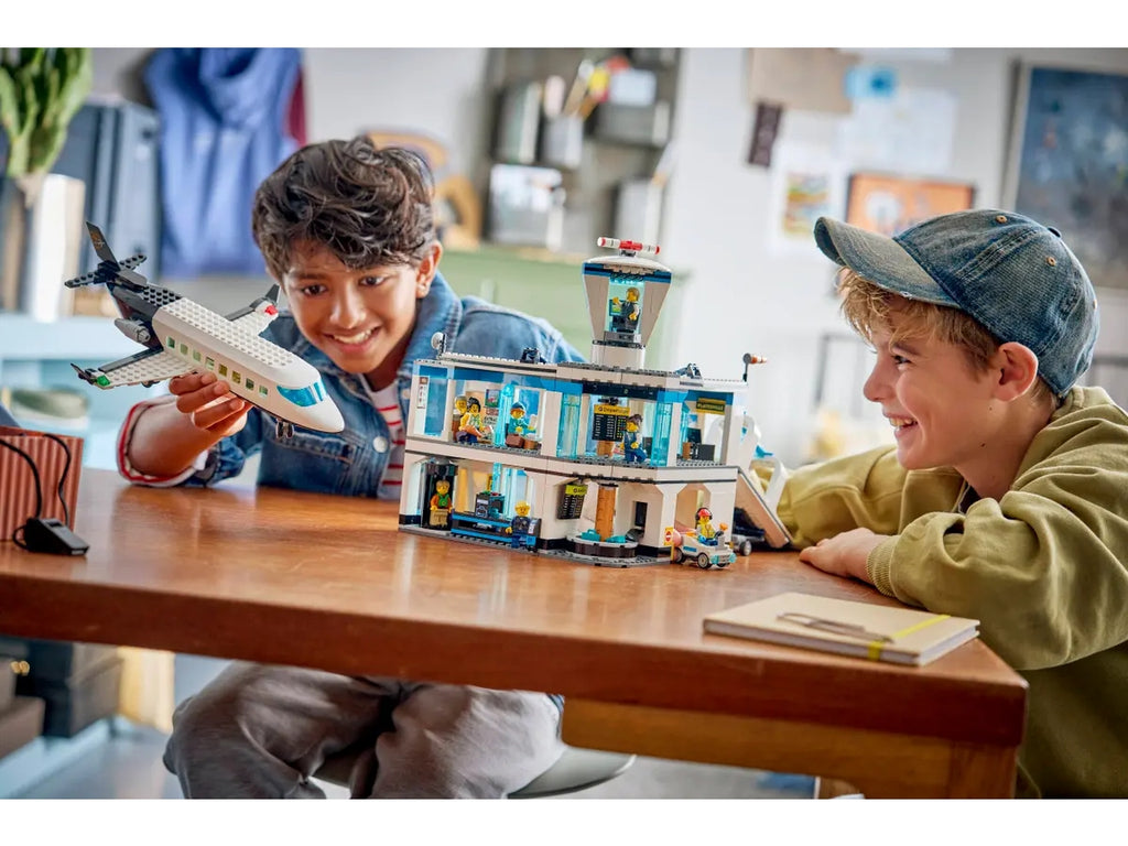 Il gioco decollerà con il kit di costruzione Aeroporto con aereo LEGO® City per i bambini di 8+ anni. Questo dettagliato modello di aeroporto è ricco di funzionalità per il gioco di finzione. I bambini possono inserire i bagagli nello lo scanner giocattolo, ruotare il metal detector per rivelare uno scheletro a raggi X e cambiare il display delle partenze per visualizzare una scelta di 4 destinazioni. Il set include anche un fantastico aeroplano passeggeri giocattolo con cabina dettagliata e scale apribili, più un trattore aeroportuale e un ponte d’imbarco. Aggiungi le 9 minifigure per ore di gioco all’insegna della fantasia. Questo giocattolo aeroportuale è una fantastica idea regalo per i bambini che amano i modelli di aeroplano e i set di costruzione LEGO. Aggiungilo ad altri set (disponibili separatamente) della gamma LEGO City per avventure ancora più grandi. Amici e familiari possono collaborare con la modalità Build Together nell’app LEGO Builder, dove tutti si divertono a costruire parte del set utilizzando i propri dispositivi. Il set contiene 887 pezzi.