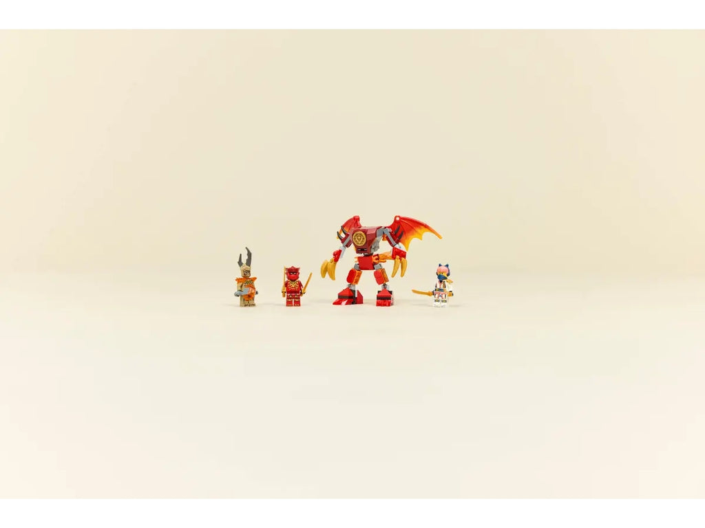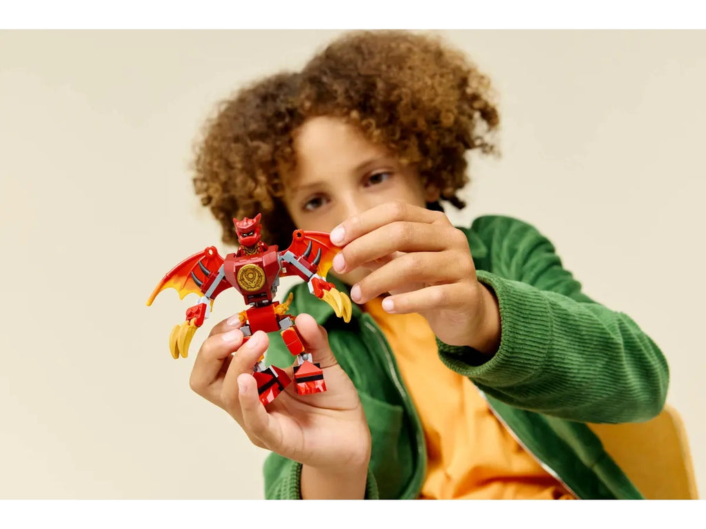 I bambini, le bambine e i fan dello show televisivo NINJAGO® La rivolta dei draghi dai 6 anni in su possono divertirsi per ore con il set costruibile Battle Pack Mech Drago di Kai LEGO® NINJAGO. Questo playset contiene un mech drago giocattolo con gambe snodabili, grandi ali, mani ad artiglio e parte superiore del corpo che ruota di 360 gradi, più un cockpit per posizionare una minifigure al suo interno. Questo fantastico giocattolo ninja contiene anche 3 minifigure: Kai con 2 spade, Sora con 2 spade e un Mostro della Terra giocattolo con mani ad artiglio, che consente ai bambini di vivere ore di avventure mentre ricreano le scene della stagione 4 di NINJAGO La rivolta dei draghi. La gamma di set da costruzione e giocattoli d’avventura per bambini LEGO NINJAGO include mech dettagliati, draghi e templi in modo che i fan possano ricreare fantastiche azioni ninja. I bambini possono costruire con confidenza utilizzando l’app LEGO Builder: ingrandisci, ruota in 3D e tieni tracciadei progressi con istruzioni digitali facili da seguire. Il set contiene 85 pezzi.