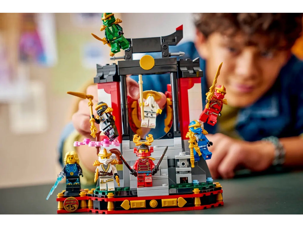 I bambini, le bambine e i nostalgici fan dei ninja dai 14 anni in su possono celebrare il 15° anniversario dello show televisivo LEGO® NINJAGO® con questo set Display personaggi Ninja – 15° anniversario e 8 minifigure. Questo monastero giocattolo ninja è dotato di gradini, un cancello apribile, una lanterna di pietra, un ciliegio ricoperto di fiori e una sala da tè sul retro con adesivi che raffigurano una famosa battaglia NINJAGO. Le minifigure sono personaggi della stagione 1 dello show televisivo LEGO NINJAGO: Kai, Zane, Cole, Jay, Lloyd, Wu e Samurai X, tutti dotati di armi, e, per la prima volta in assoluto, una minifigure del Maestro dei Fulmini elementale collezionabile su un supporto separato che può essere fissato al monastero. La gamma di set da costruzione LEGO NINJAGO per i bambini include mech, draghi e templi in modo che i fan possano ricreare l’azione ninja. I bambini possono costruire con confidenza utilizzando l’app LEGO Builder: ingrandisci, ruota in 3D e tieni traccia dei progressi con istruzioni digitali facili da seguire. Il set di costruzione contiene 447 pezzi.