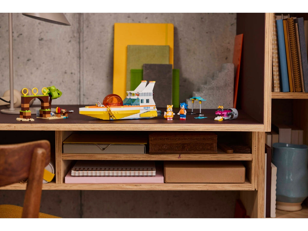 Delizia i giovani amanti dellâavventura e i fan dei personaggi dei videogiochi dagli 8 anni in su con un divertente regalo per i gamer con questo set giocattolo costruibile per bambini Lâaeroscafo delle avventure di Tails (76997), ricco di funzioni e opzioni di gioco interattive. Questo playset collezionabile LEGO® Sonic the Hedgehog⢠contiene una barca con lanciatore di sfera di velocità incorporato nella parte anteriore, karaoke e pista da ballo, oltre a connettori per il parasailing nella parte posteriore. Divertenti opzioni di gioco di ruolo con 4 personaggi, un modello di isola con 3 anelli, un arco, una sedia a sdraio e altri accessori. Questo fantastico giocattolo di Sonic consente ai fan di del riccio blu di creare infinite storie con Sonic e Tails: da una festa sulla barca, con balli, karaoke, sci nautico e parasailing, al relax sullâisola dopo aver sconfitto Jawz e salvato un Tocky. Il divertimento superveloce sposa il gioco di fantasia con i giocattoli LEGO Sonic the Hedgehog. I bambini vivono anche unâavventura di costruzione facile e intuitiva con lâapp LEGO Builder, dove possono ingrandire e ruotare i modelli in 3D, salvare set e monitorare i loro progressi.