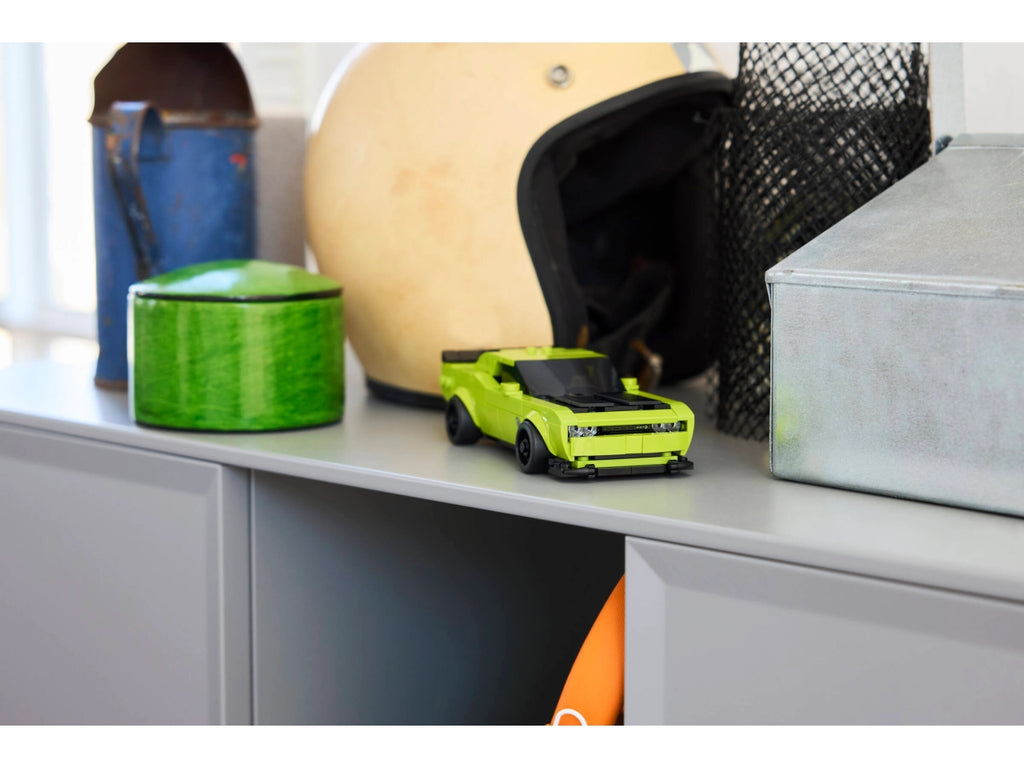 I bambini e le bambine dai 9 anni in su possono collezionare, costruire, giocare ed esporre questa dettagliatissima Sports Car Dodge Challenger SRT Hellcat LEGO® Speed Champions (77237). Caratterizzato da molti degli stessi audaci dettagli di design della vera muscle car, questo modello giocattolo di Dodge in mattoncini per bambini trasuda alte prestazioni, potenza e adrenalina.