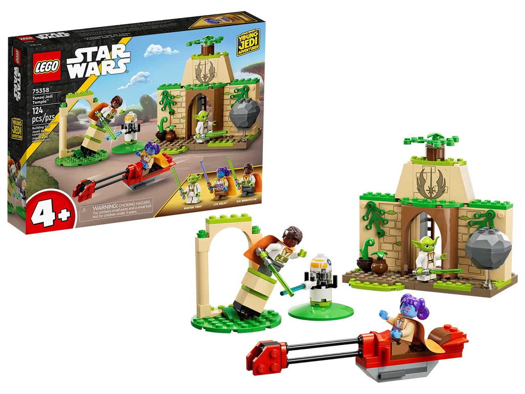 Con questo starter set del tempio jedi su tenoo (75358), i bambini dai 4 anni in su potranno fare la loro prima esperienza di costruzione e gioco nelluniverso lego® star wars. il tempio ha una funzione di roccia levitante e interni dettagliati con tante funzioni di gioco. sono presenti anche un droide da addestramento e una prova di equilibrio per lallenamento jedi, oltre a una speeder bike. un fantastico regalo per i fan di star wars: young jedi adventures, il set include anche le nuove minifigure lego di lys solay e kai brightstar, novità  di giugno del 2023, e una minifigure lego del maestro yoda.divertente da costruirele semplici istruzioni illustrate sono perfette per i bambini che stanno imparando a leggere. per un maggiore divertimento digitale, lapp lego builder offre strumenti intuitivi di ingrandimento e rotazione che consentono ai bambini di visualizzare il loro modello mentre lo costruiscono.esperienza 4+i giocattoli da costruzione lego star wars 4+ sono appositame nte progettati con gli starter brick, in modo che anche i costruttori alle prime armi possano realizzare veicoli, edifici e altro ancora con il solo aiuto di un adulto o di un fratello maggiore.idea regalo per bambini in età  prescolare: questo starter set di 124 pezzi lego® star wars è un divertente regalo di compleanno, di natale o una sorpresa per i fan di star wars: young jedi adventures dai 4 anni in su.