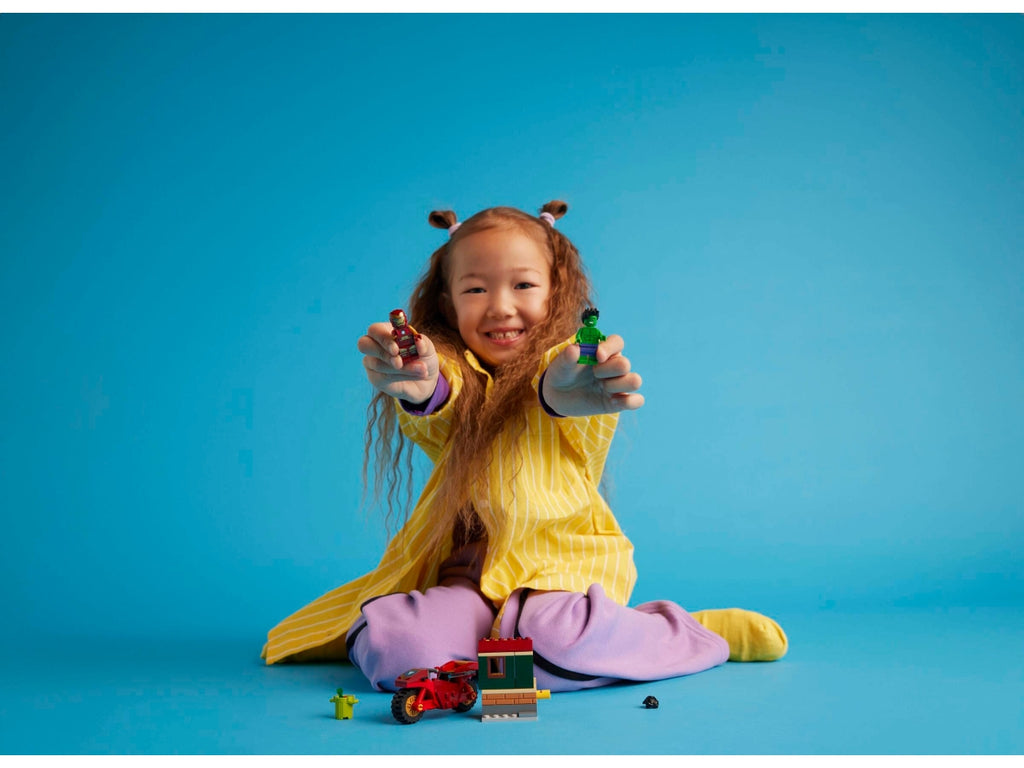 Regala a un giovane fan dei supereroi o fan LEGO® questo set dâavventura costruibile degli Avengers. Iron Man con moto e The Hulk LEGO Marvel (76287) è un giocattolo costruibile pensato per incoraggiare la sicurezza di sé, la concentrazione e le capacità di risoluzione dei problemi dei bambini dai 4 anni in su. Il set di gioco LEGO Marvel include le minifigure di Iron Man e dellâIncredibile Hulk, oltre alla motocicletta giocattolo push-along costruibile di Iron Man e una casa costruibile. I bambini attivano la funzione per far crollare lâedificio (cosa che accade spesso quando Hulk è nei paraggi!) e poi lo ricostruiscono appena in tempo per la nuova esplosione di rabbia di Hulk. Il set contiene uno Starter Brick per il telaio del veicoloaiutando i bambini a costruire. Istruzioni intuitive sono contenute nella colorata guida illustrata. Per tanto divertimento digitale in più, i costruttori possono ingrandire e ruotare i modelli utilizzando lâintuitiva app LEGO Builder. I playset dâavve ntura LEGO Marvel 4+ sono un fantastico regalo per tutta la famiglia. Man mano che gli adulti insegnano ai bambini a costruire, condividono con loro preziose pietre miliari dello sviluppo.