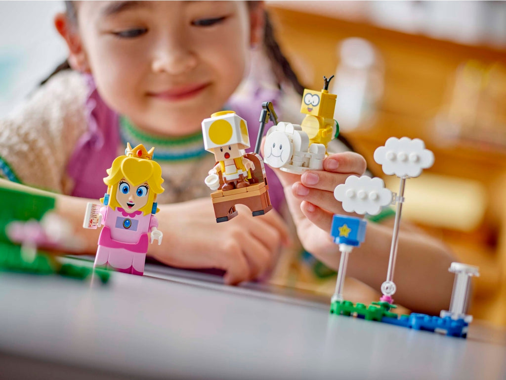 Unisciti a un iconico personaggio di Super Mario⢠per un picnic e vola su una nuvola per salvare Toad giallo con il set di gioco interattivo della principessa LEGO® Peach⢠per bambini (71441). Un fantastico regalo Nintendo® per i bambini, le bambine e i gamer dai 6 anni in su, il set contiene un personaggio interattivo di LEGO Peach, più Lakitu, Toad giallo e Fiammetto. Viaggia dal tubo di partenza allâasta della bandiera innescando reazioni digitali in LEGO Peach e raccogliendo monete lungo ilpercorso. Fai un picnic, leggi una lettera che dice che Toad giallo è stato catturato, fai cadere Lakitu dalla nuvola, vola, salta e fai un salto mortale sulla nuvola per salvare Toad giallo. Il giocattolo della nuvola costruibile è dotato anche di una canna da pesca con cui Lakitu può sollevare il sedile da picnic di Toad giallo. Trova le istruzioni per la costruzione nella confezione o nellâapp LEGO® Super Marioâ¢. Per avventure extra, combina le costruzioni e i personaggi di questo set di gioco con quelli degli altri set del vasto assortimento LEGO Super Mario.