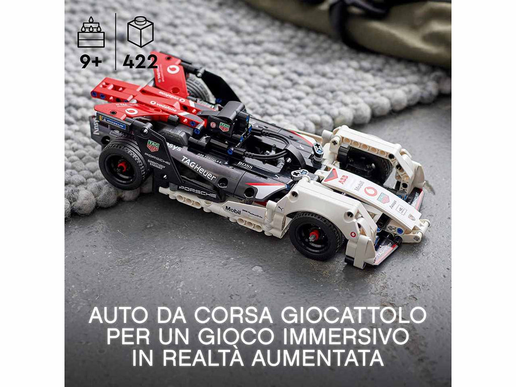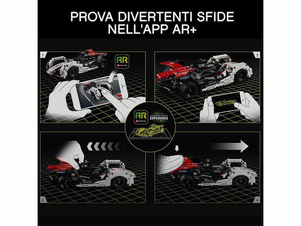 L'app di realtà aumentata di LEGO permette ai bambini di calarsi nei panni di un vero pilota Porsche di Formula E. Potranno scegliere su quale circuito correre, decidere come gestire l'energia e usare le loro abilità per diventare un (o una) grande pilota. Grazie ai 2 motori dotati di sistema pull-back, i bambini potranno decidere quanta energia caricare prima di premere l'interruttore e veder sfrecciare la propria macchina giocattolo sul tracciato AR proprio davanti a loro! Grazie all'app AR di LEGO, i bambini potranno assumere il pieno controllo del gioco.