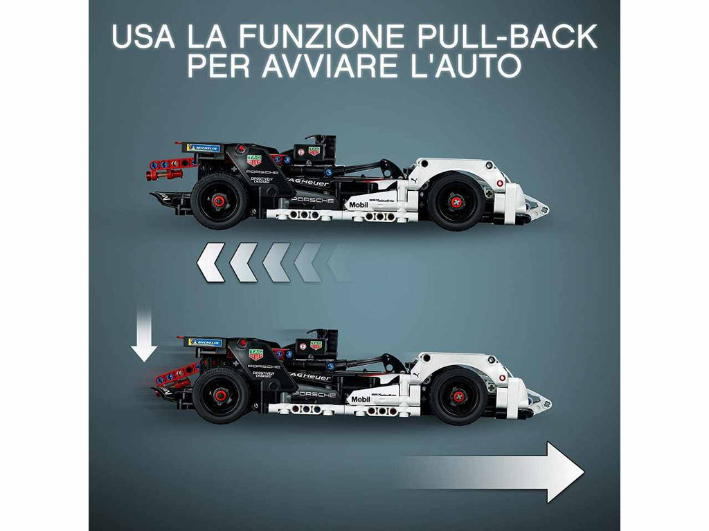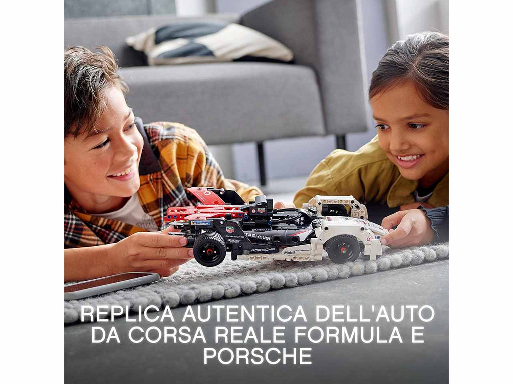 Questo fantastico modellino di auto da corsa LEGO Technic Formula E Porsche 99X Electric (42137) con sistema pull-back è il regalo perfetto per tutti gli appassionati di Formula E e Porsche dai 9 anni in su. Con questo modellino della famosa Porsche, i bambini potranno immergersi in un'esperienza di costruzione coinvolgente, ricreando tutti i dettagli della vera auto e rivivendo tutte le emozioni della vera corsa, grazie ai 2 motori pull-back e all'app LEGO Technic di realtà aumentata (AR).