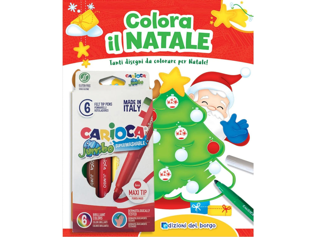 Un album da colorare in cui sono presenti tutti i soggetti natalizi più amati da bambine e bambini (a sinistra il modello colorato e a destra il disegno da colorare). Un libro per divertirsi ovunque ci si trovi, grazie alla scatola di sei pennarelli Jumbo Carioca a punta grossa in dotazione. 48 pagine. Età di lettura: da 4 anni.