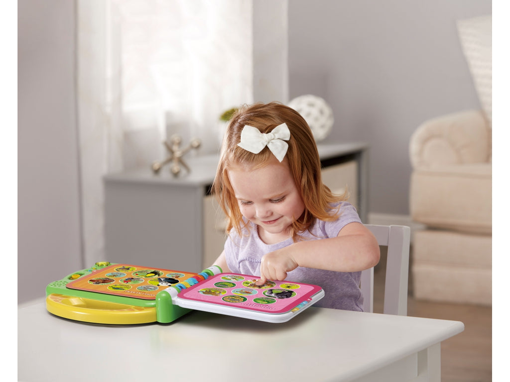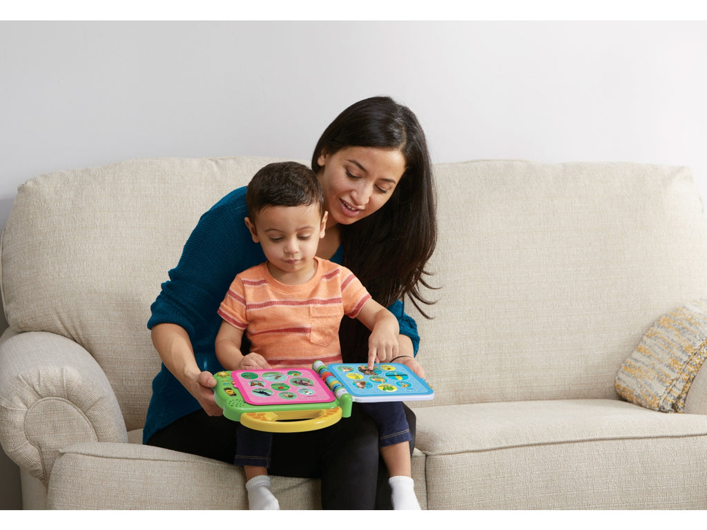 ⢠Questo libro illustrato parlante e interattivo permette al bambino di imparare i nomi di 100 di animali in italiano e inglese. ⢠12 pagine educative, plastificate e illustrate, con sensori per selezionare le tante immagini e fare numerose scoperte. Il bambino impara i nomi degli animali della fattoria, della savana, del deserto, delle regioni polari, degli oceani e molto altro. ⢠3 modalità di gioco: nomi degli animali, curiosità e suoni divertenti. ⢠La maniglia è adatta alle manine dei più piccoli e permette una facile presa. ⢠2 canzoni in italiano, 2 canzoni in inglese e divertenti effetti sonori! ⢠100% bilingue (italiano/inglese) Libro illustrato bilingue - 100 animali