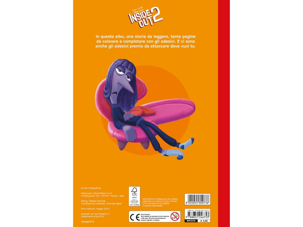 Lâalbo attivo dedicato al nuovo film Inside Out 2, studiato per giovani lettori, ai quali vengono offerte contemporaneamente più funzioni per lo sviluppo delle attività manuali e la scoperta del mondo. Con storie da colorare e completare con gli adesivi, e ulteriori adesivi premio colorati e riposizionabili. 16 pagine. Età di lettura: da 3 anni.