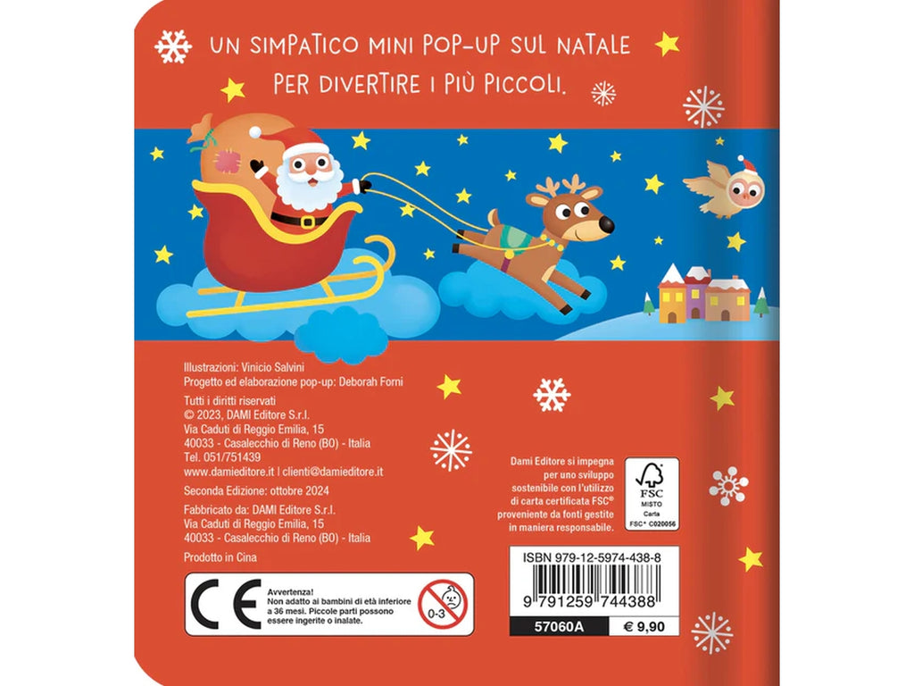 Uno spassoso e coloratissimo pop-up natalizio tutto da scoprire: le dimensioni ridotte e i materiali di fabbricazione resistenti lo rendono adatto anche alle mani dei lettori piccolissimi, che si divertiranno a osservare le illustrazioni degli elementi tipici del Natale animarsi ad ogni apertura, per stupirsi dalla prima allâultima pagina! 26 pagine. Età di lettura: da 3 anni.